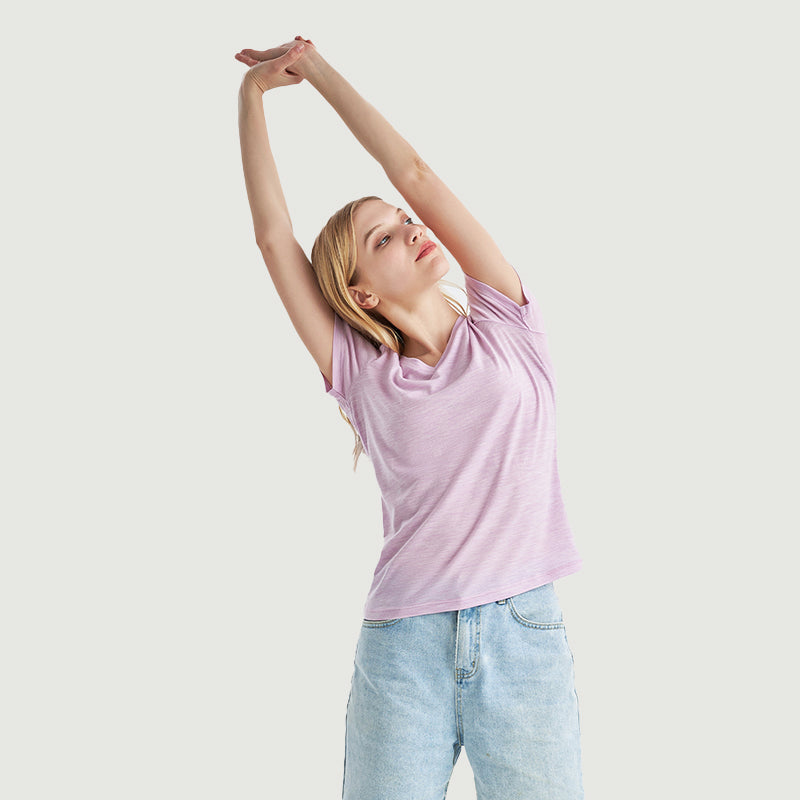 Unsere Premium-T-Shirts aus klassischer Merinowolle für Damen mit V-Ausschnitt
