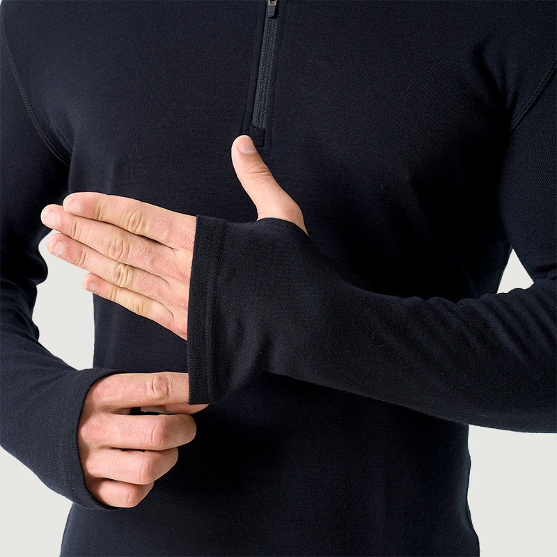 Merino wool provides a layer of insulation and features thermo-regulating properties that adapt to your body and external conditions, keeping you warm in the cold and cool in the heat.